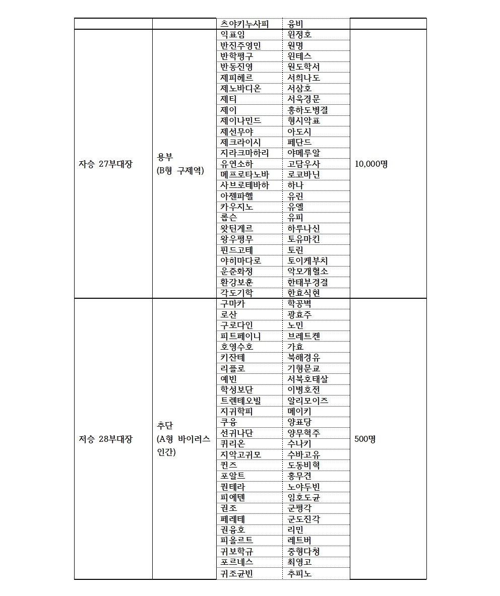용들이나 신들을 부르면 내 앞에 와서 복명복창을 하면서 자신의 소속부대, 계급, 이름, 성별, 형상, 임무를 말합니다.