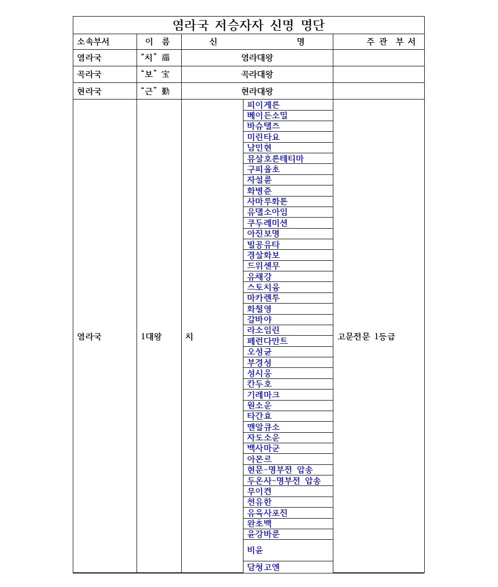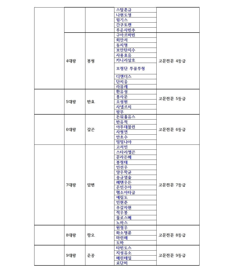 오늘 천상세계 황실 가계도, 천상세계 4개 정부 조직도, 3,333개 제후(왕)국과 제후(왕) 명단, 지옥세계 정부 조직도와 저승 대왕들 이름과 저승사자 부대장들과 저승사자 명단 그리고 인간화, 신들, 용들, 반신반인들로 구성된 천상정부조직도와 군대 조직 일부를 지구 최초로 전격 공개합니다.