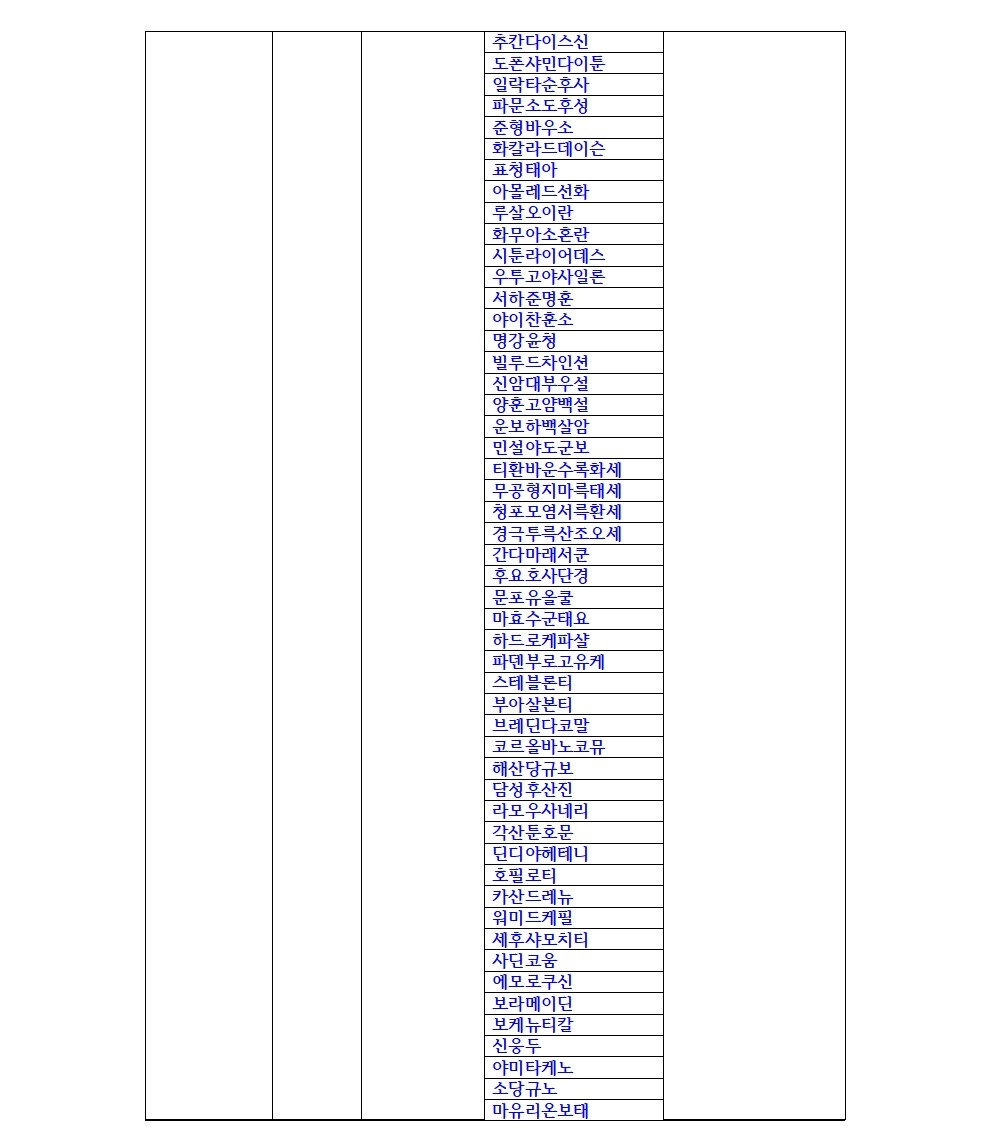 비, 바람, 구름, 태풍, 폭우, 폭설, 우박, 지진, 쓰나미, 화산 폭발, 지구 자전과 공전, 오존층, 빙하기, 운석, 소행성, 혜성, 태양, 달, 화성, 수성, 목성, 금성, 토성의 운행을 담당하는 용들의 부대와 왕들, 대장군과 수하들 일부 명단을 전격 공개합니다.